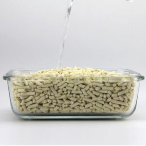 主要成分的豆渣廢物、玉米芯等,雖然制作工藝和松木砂相似,但是它們和膨潤土砂一樣,是結團型貓砂。而豆渣具有非常好的水溶性,可以直接倒入馬桶,能迅速融掉,而不用擔心堵塞。另外豆腐砂采用食品級的材質,貓咪不小心誤食也不用太擔心。