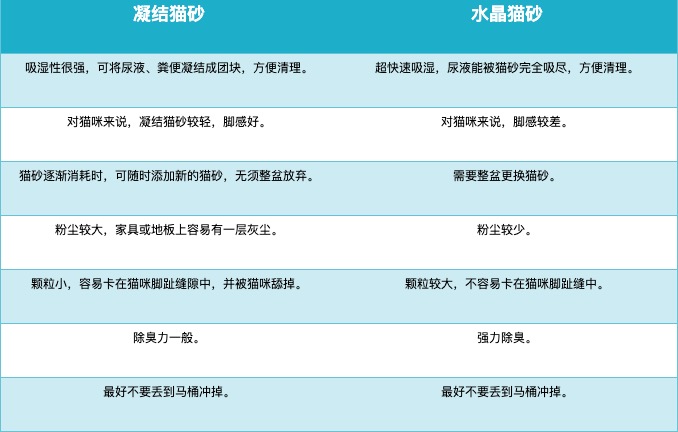 在國內,我們最常見的兩種貓砂:凝結貓砂,水晶貓砂,這兩種貓砂的優缺點很明顯,我們不妨看看它們之間的對比。