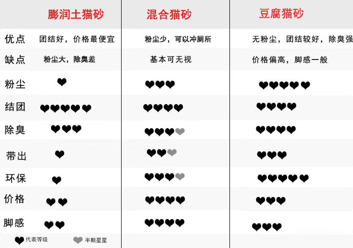下面我們就這三類貓砂來個大致的比較:(如圖)